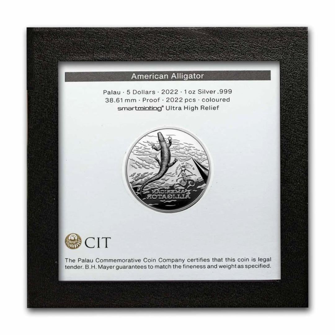 One 2022 Palau $5 American Alligator 1oz Silver Coin with Box & COA.