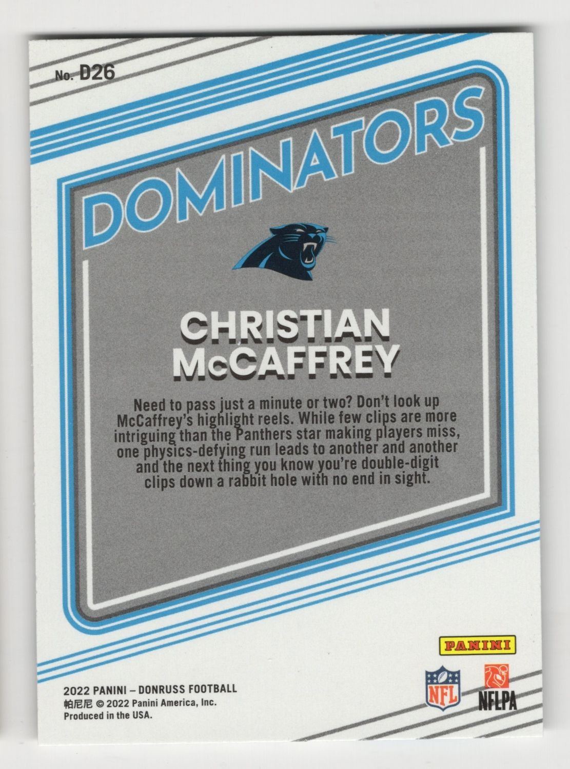 2022 Panini Donruss Christian McCaffrey Dominators Card #D26