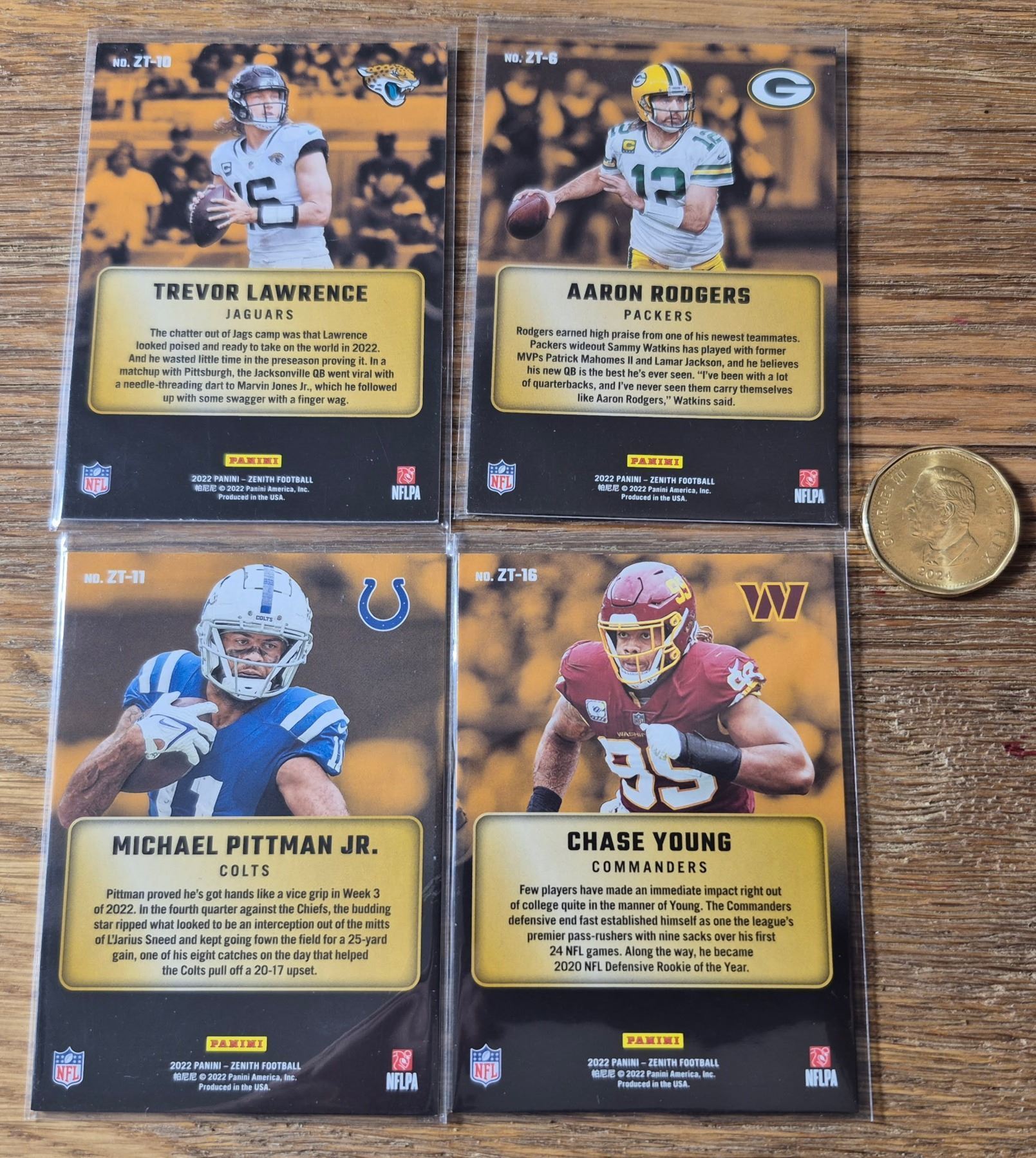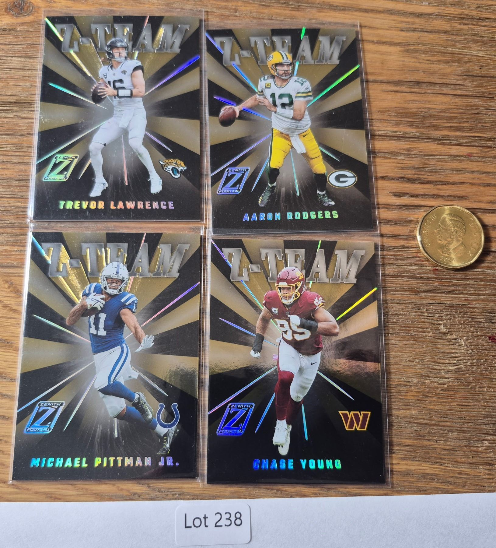 Four-card Z-Team insert lot featuring NFL stars from the 2022 Zenith release.