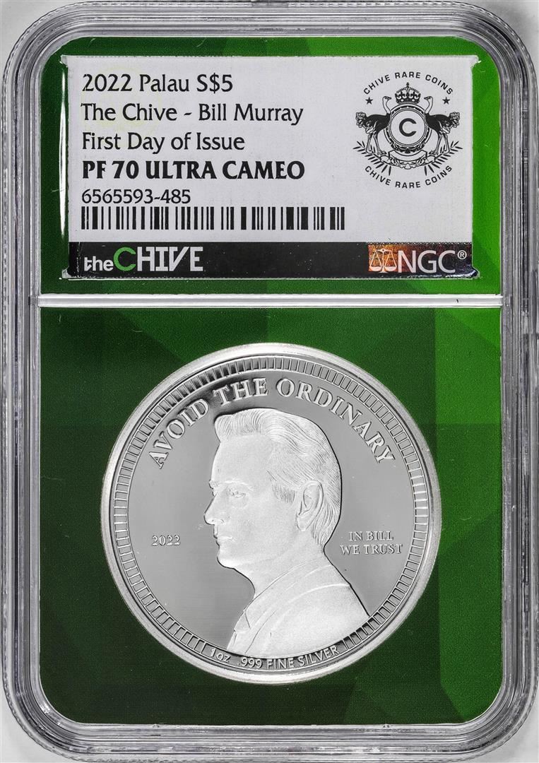 One 2022 Paulau $5 Proof The Chive Bill Murray Silver Coin NGC PF70 Ultra Cameo FDOI. NGC Certified.