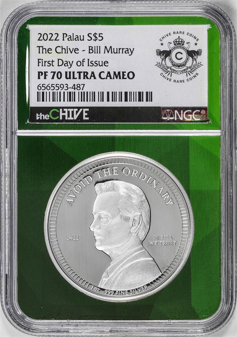One 2022 Paulau $5 Proof The Chive Bill Murray Silver Coin NGC PF70 Ultra Cameo FDOI. NGC Certified.