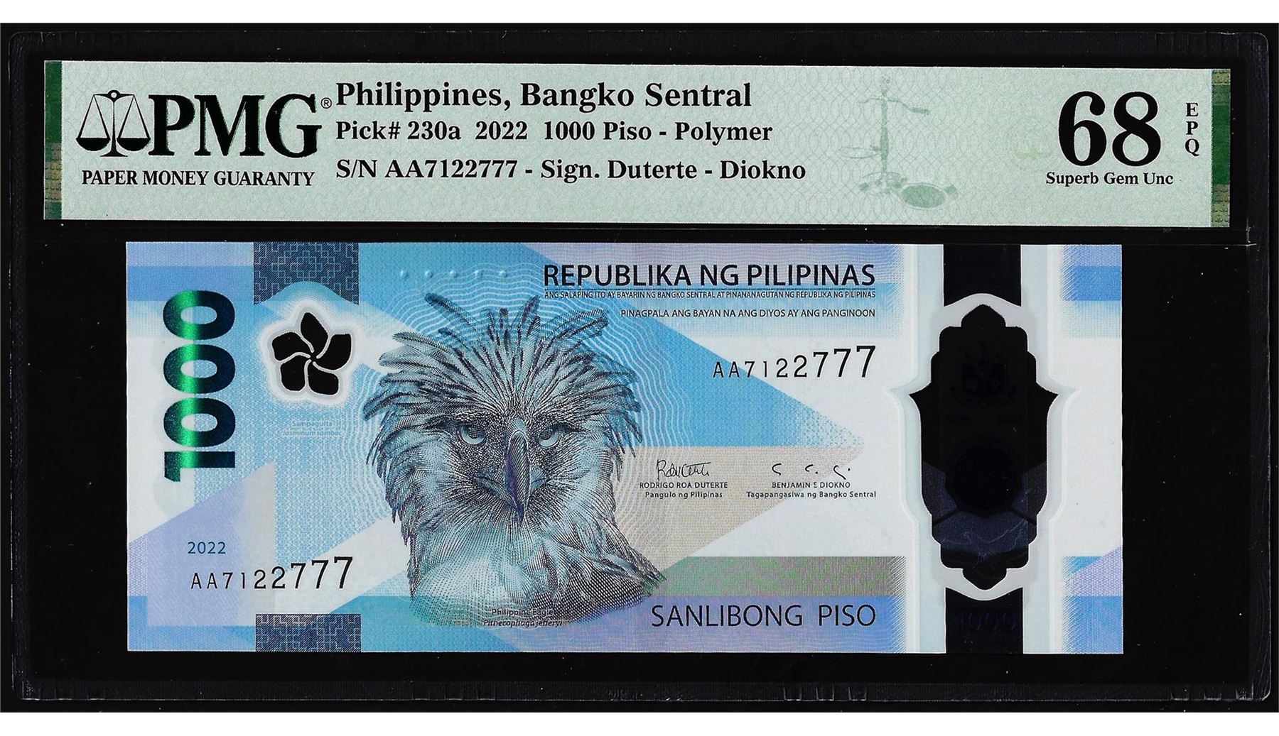 2022 Philippines Central Bank 1000 Piso Note P230a PMG Superb Gem Uncirculated 68EPQ