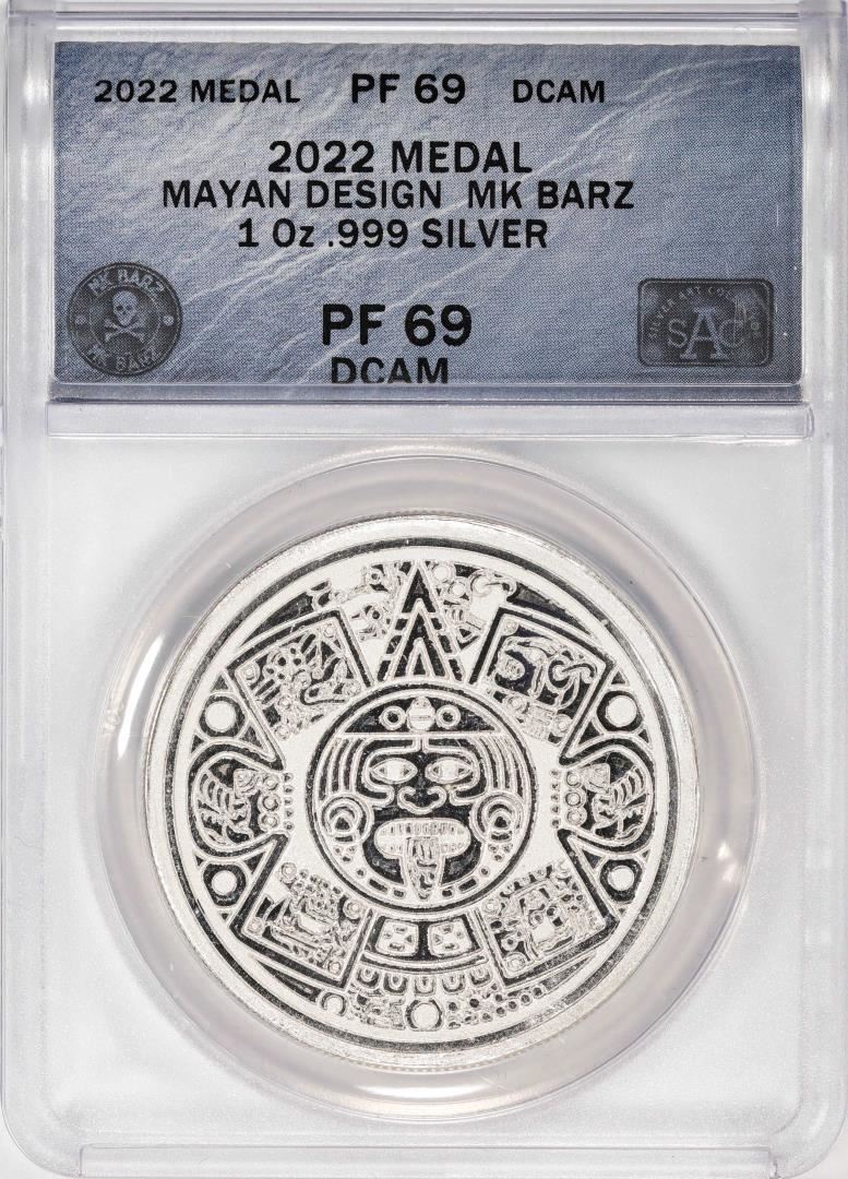 2022 Proof MK Barz 1oz Silver Medal Mayan Design ANACS PF69DCAM