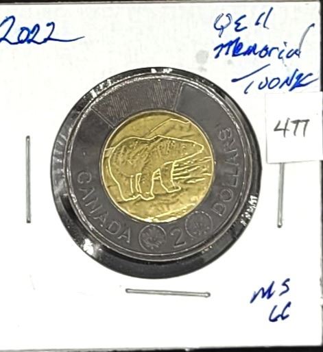 2022 Queen Elizabeth Memorial Toonie from Mint roll only Black ring : 5,000,000 minted