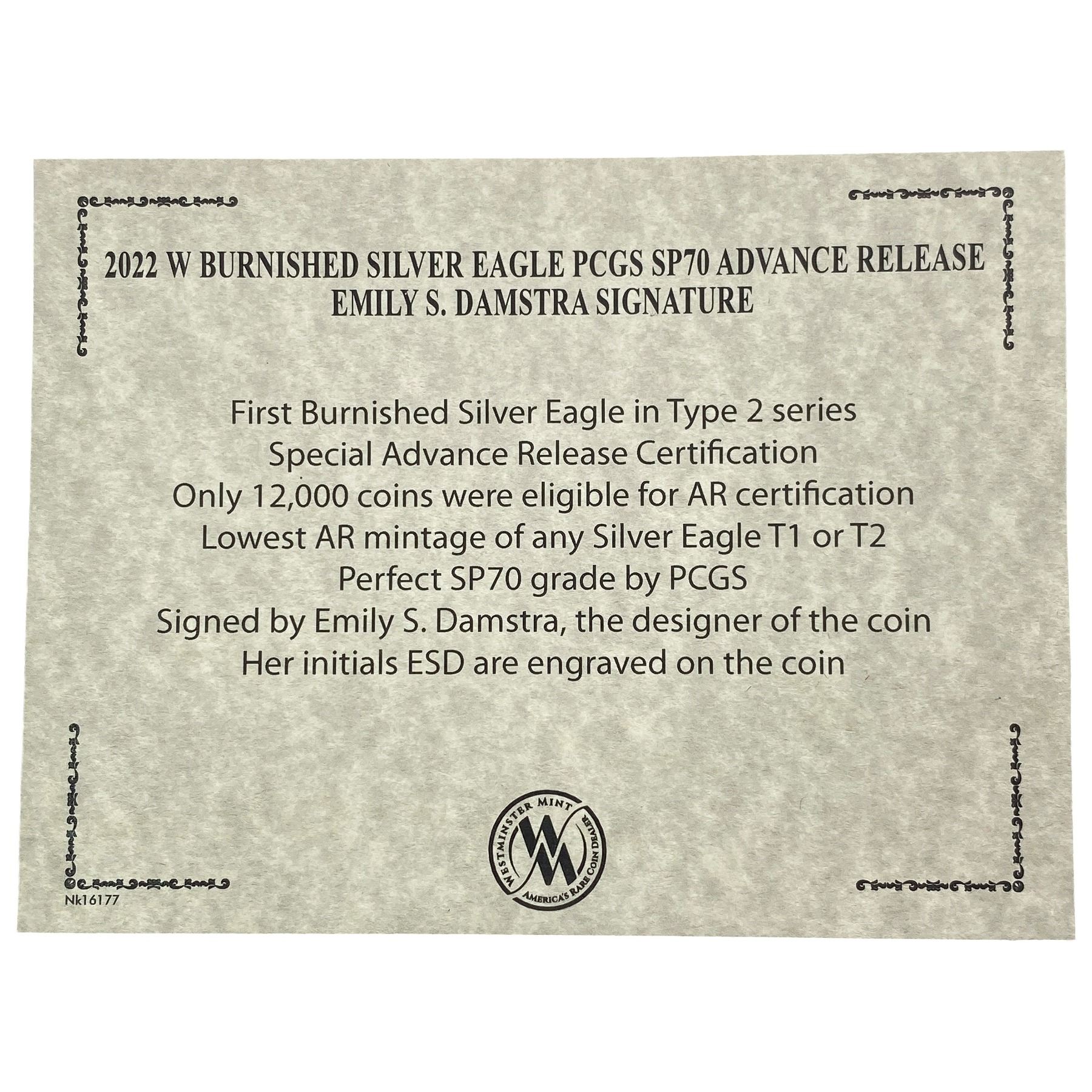 2022 Silver Eagle PCGS SP70 Burnished/Signed