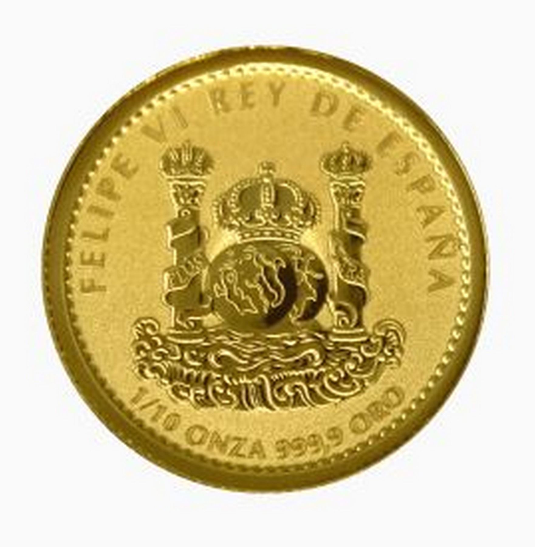 2022 Spanish Doubloon 1/10oz Gold 15 Eur REV PR