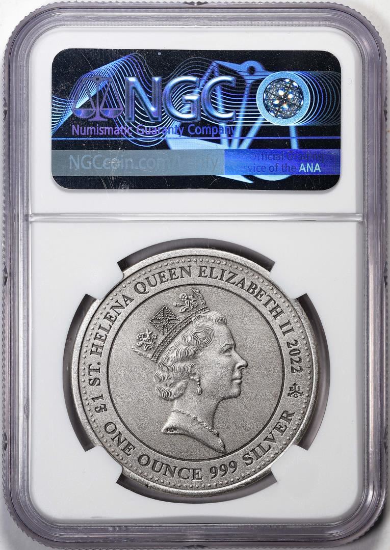 One 2022 St. Helena 1 Pound Pegasus Silver Coin NGC MS70 Antiqued. NGC Certified.