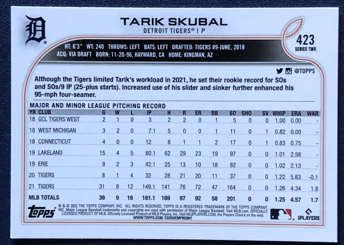 Card #423 MLB, rookie, baseball