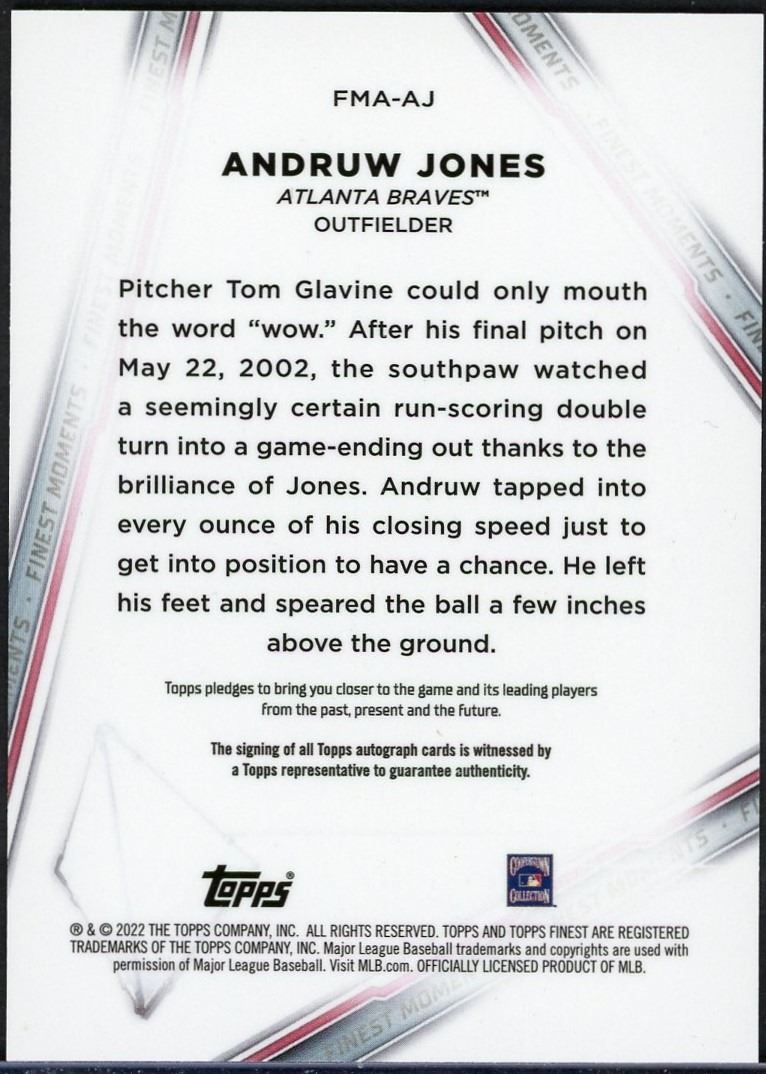 2022 Topps Finest Baseball Refractor autograph of former Atlanta Braves all time great Andruw Jones!