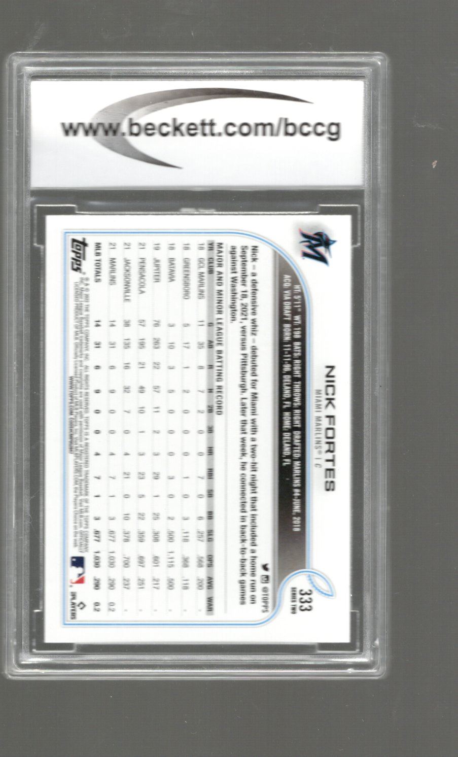 2022 Topps RC Nick Fortes #333 Beckett Grade 10