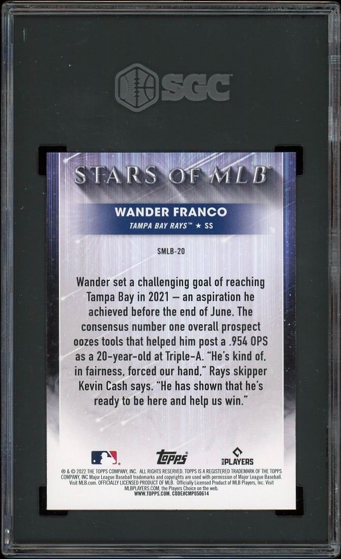 Unimprovable SGC GEM MINT 10 Wander Franco rookie card from Topps 2022 Stars of MLB.