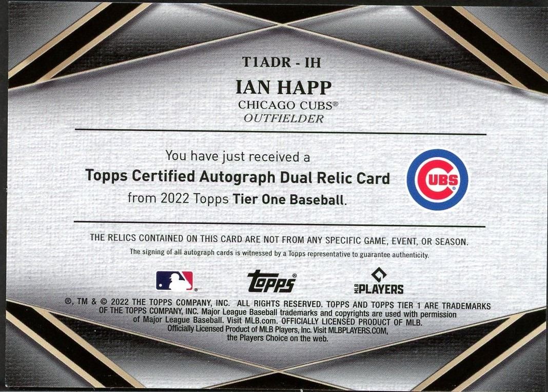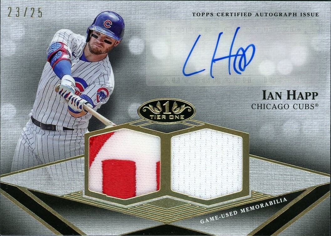 2022 Topps Tier One Dual Relic Autograph of Chicago Cubs star Ian Happ #'d to 25!