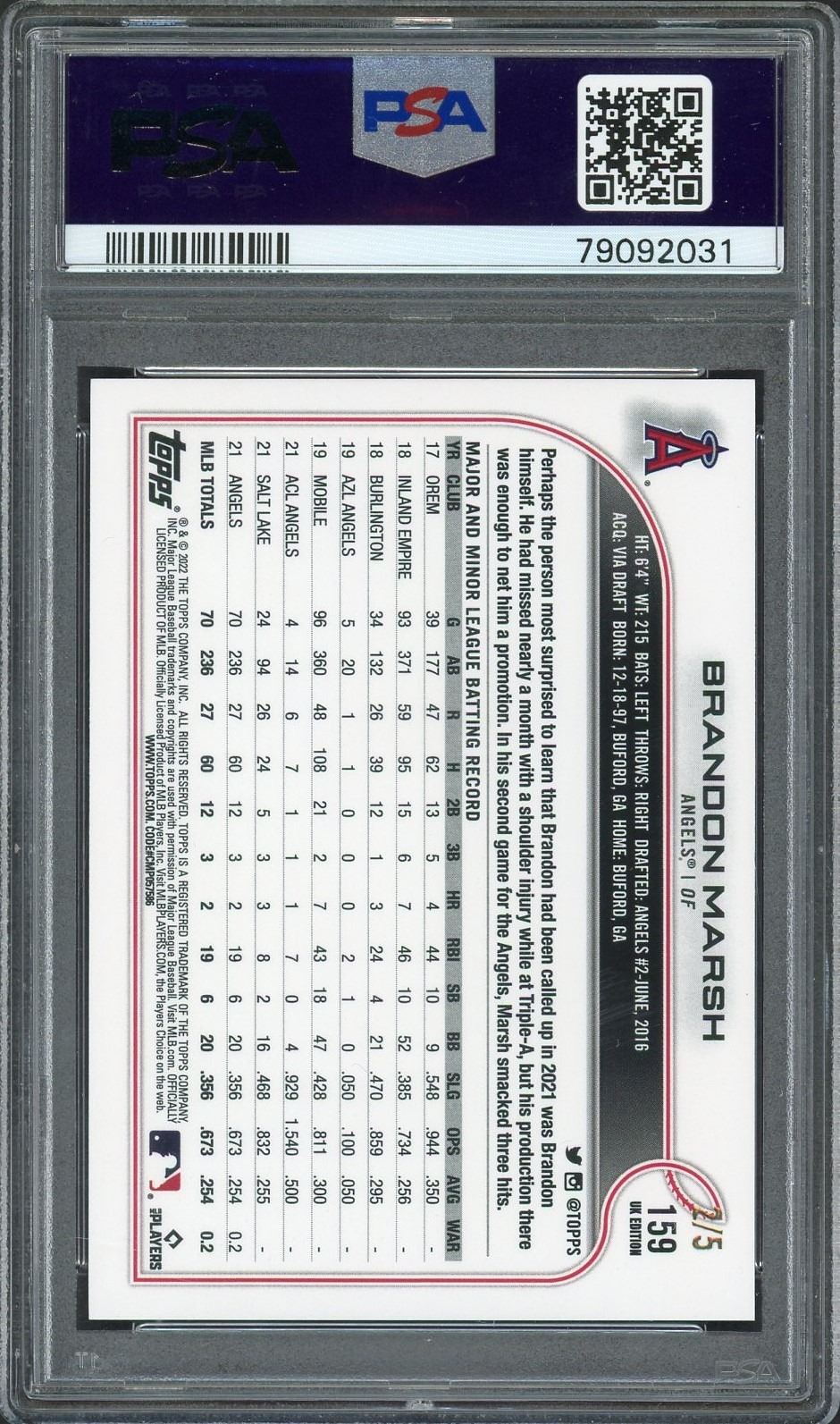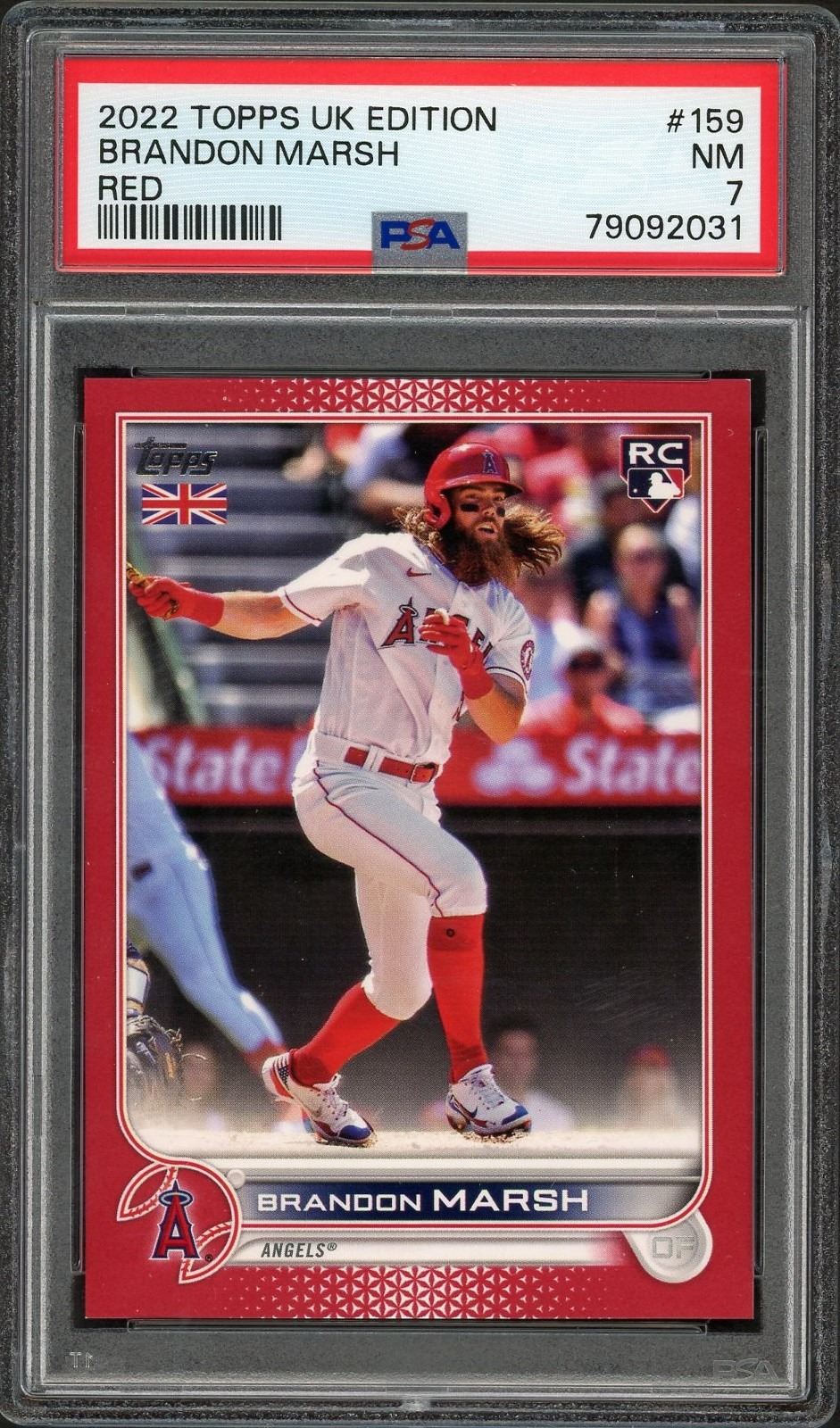 2022 Topps UK Edition Red #'d to 5 rookie card of Brandon Marsh graded a NM 7 by PSA!