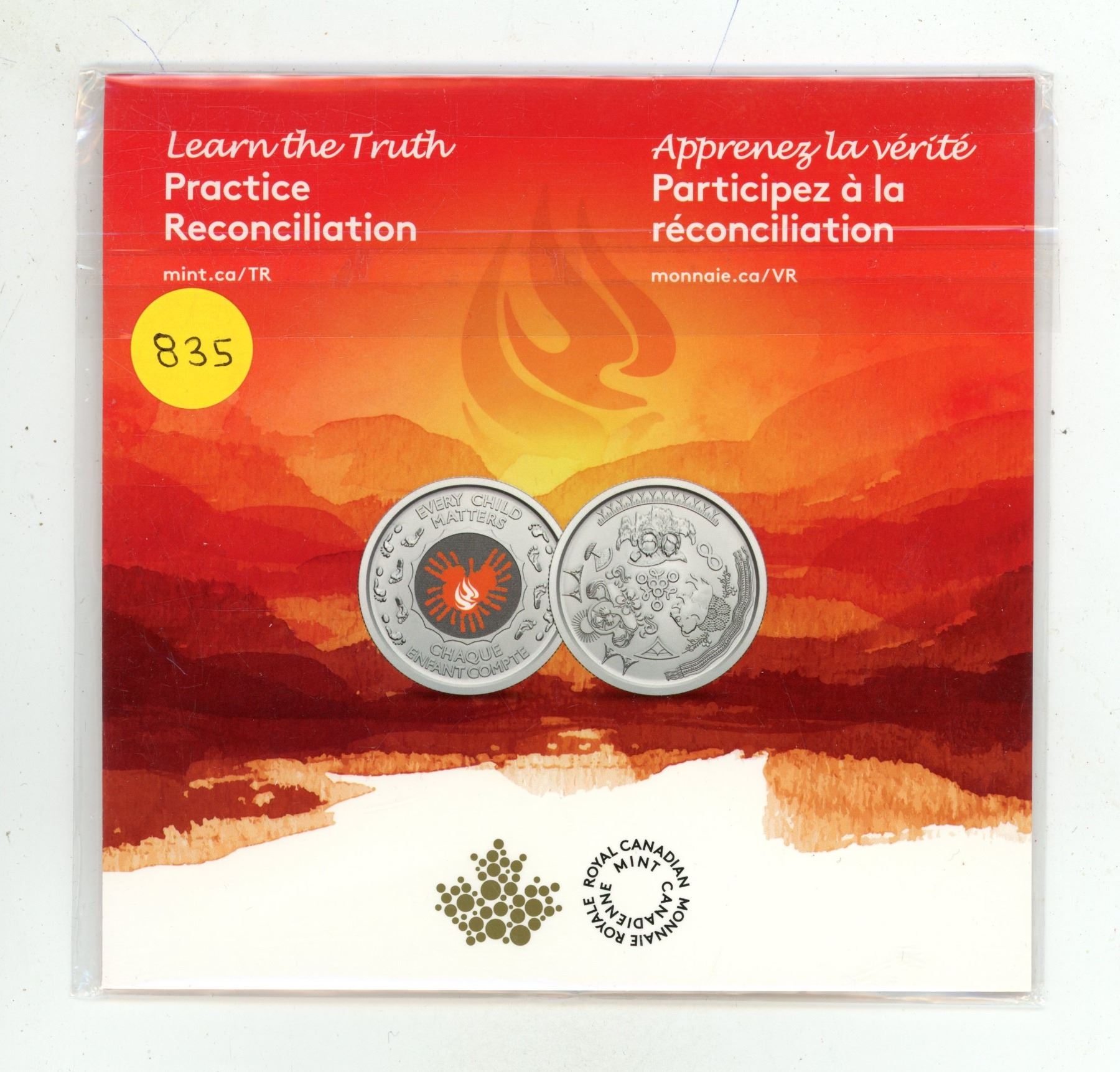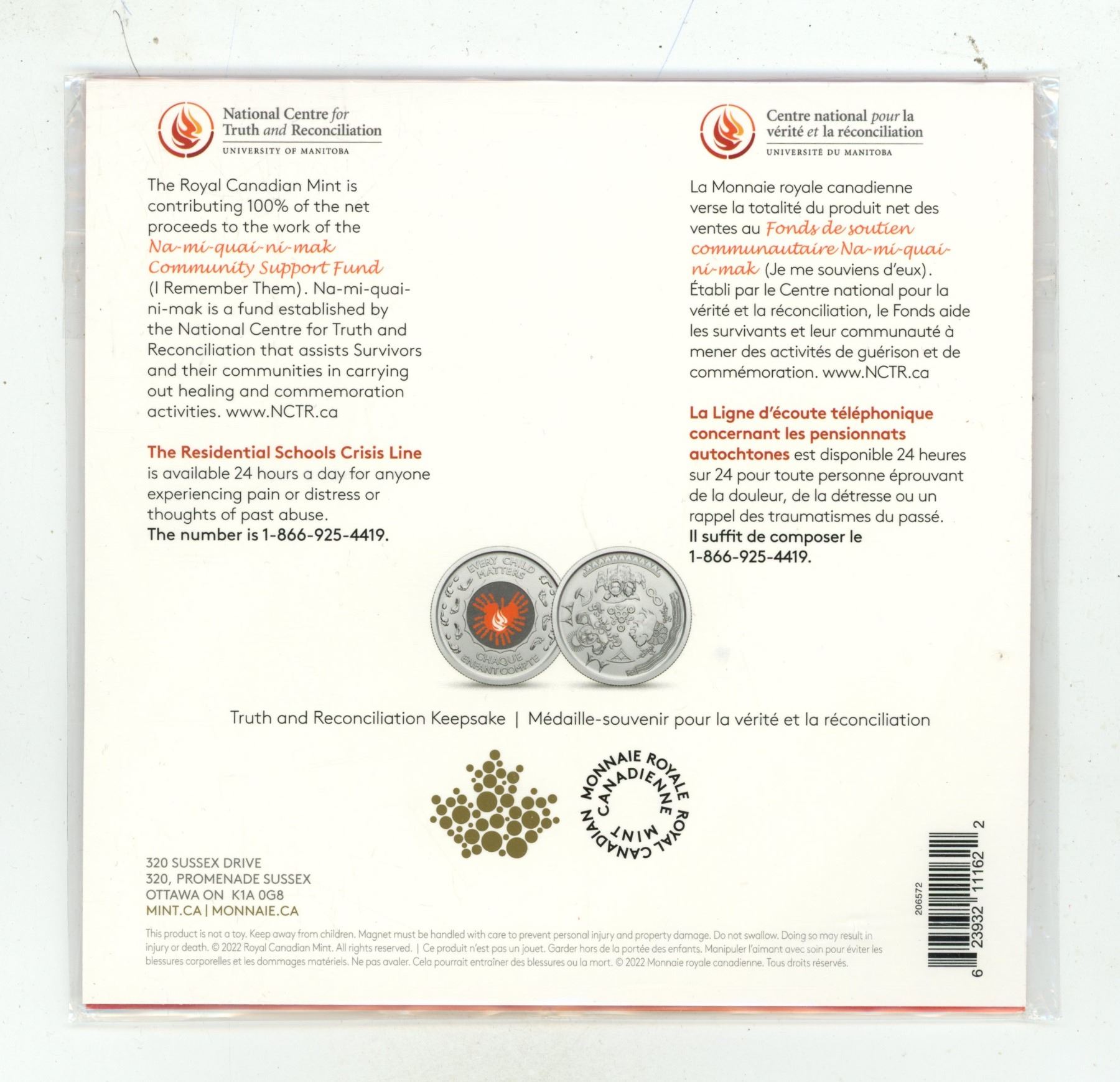 2022 Truth and Reconciliation Keepsake. Red Colourized medal issued by the Royal Canadian Mint. Housed in its original unopened folder.