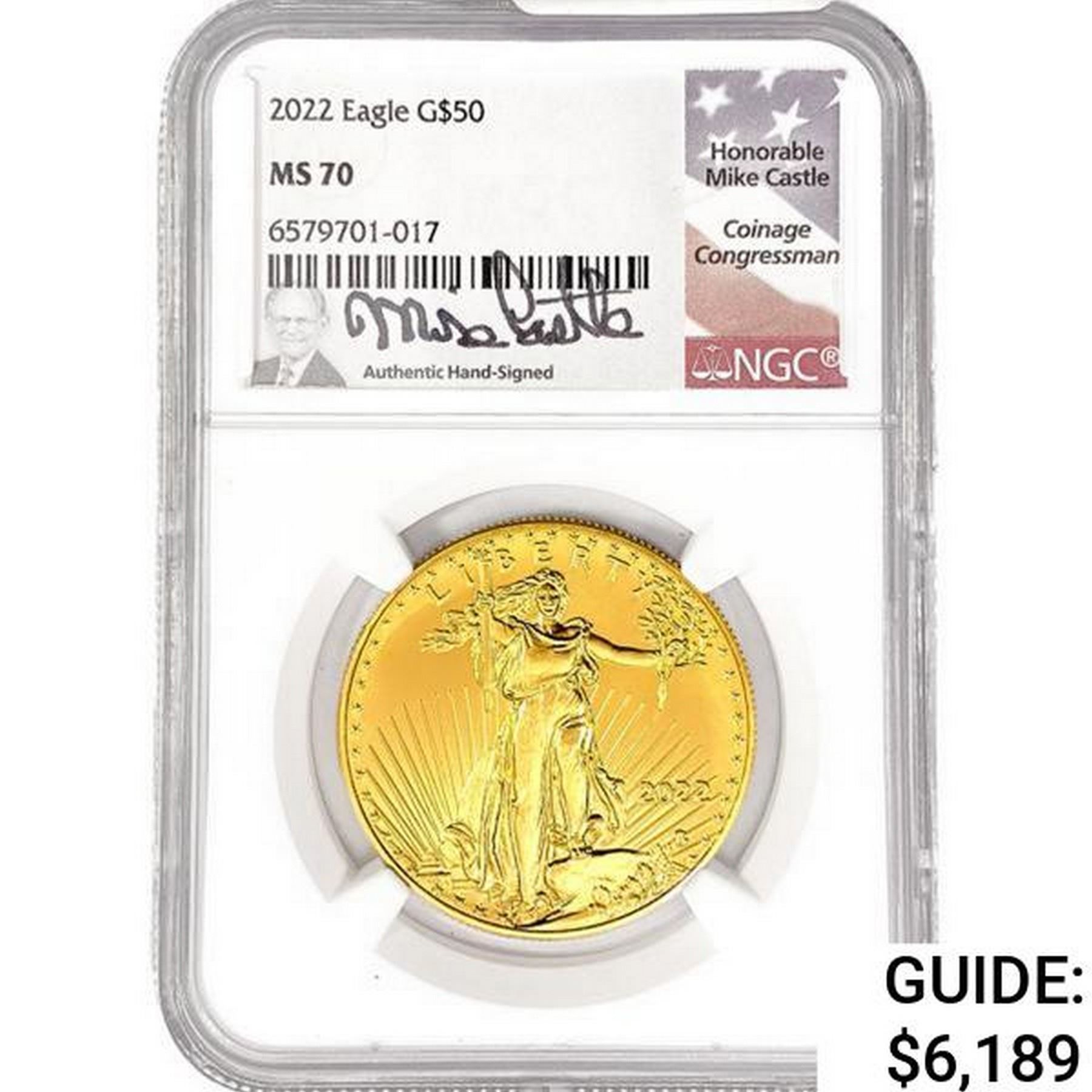 2022 US 1oz Gold $50 Eagle NGC MS70 Signed Mike Ca
