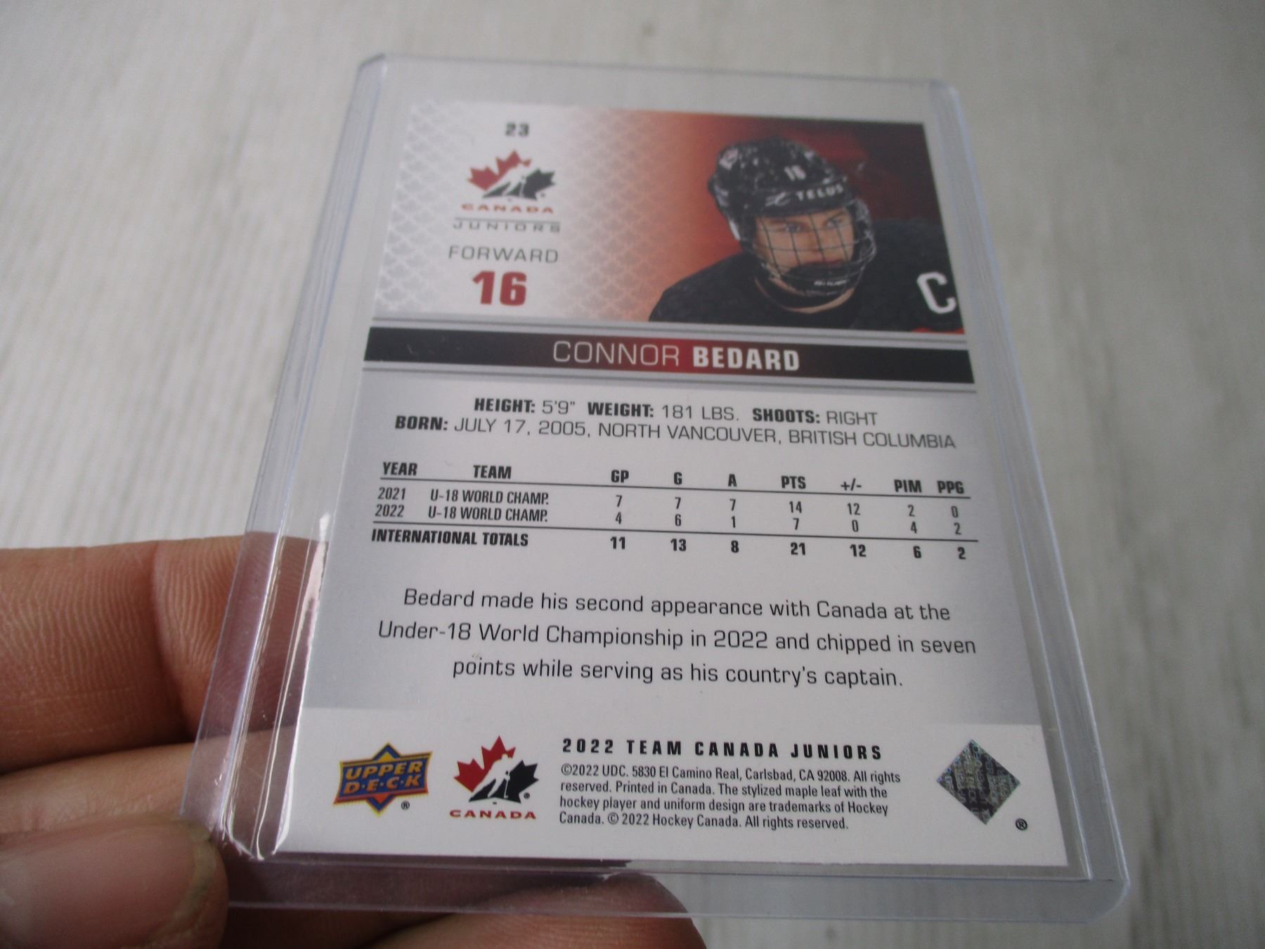 2022 Upper Deck-- Connor Bedard (Short Print Red Parallel #23)