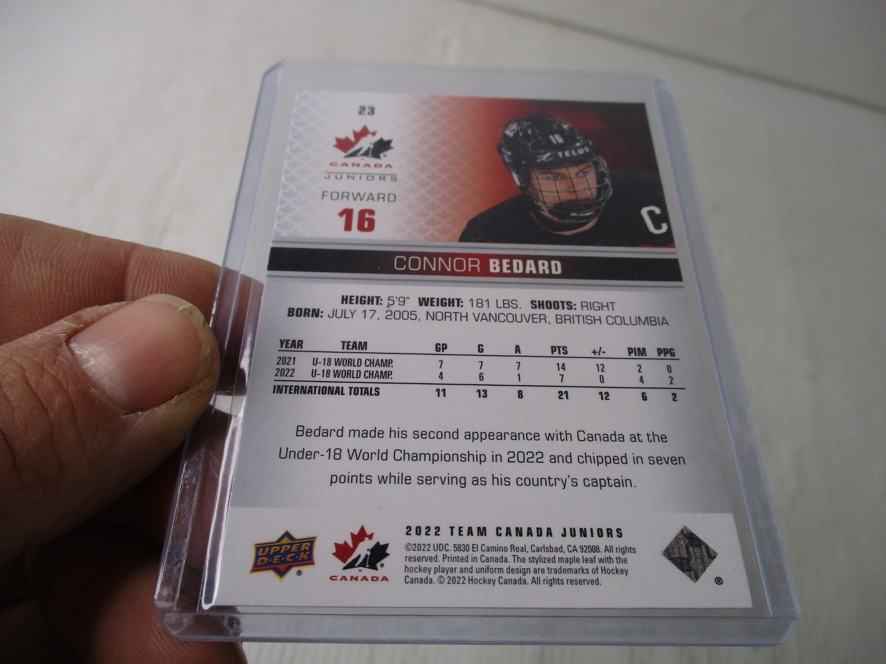 2022 Upper Deck-- Connor Bedard (Short Print Rose Gold Parallel #23)