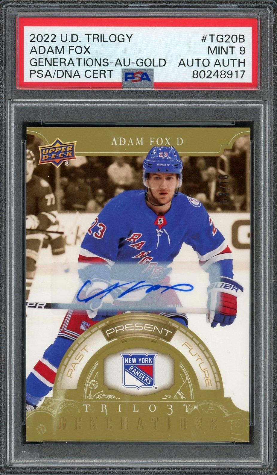 2022 Upper Deck Trilogy Generations "Present" Gold Auto #03/10 of star NY Rangers Dman Adam Fox!