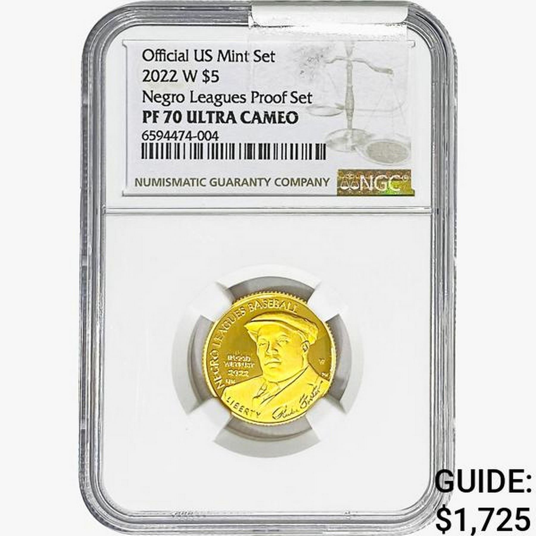 2022-W 1/4oz Gold $5 Negro Leagues Mint Set NGC PF70 UC