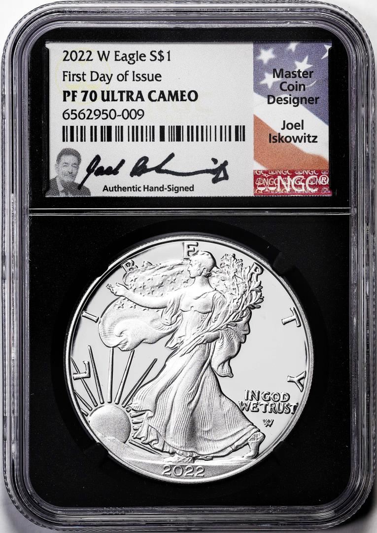 2022-W $1 Proof American Silver Eagle Coin NGC PF70 Ultra Cameo FDOI Iskowitz Signed
