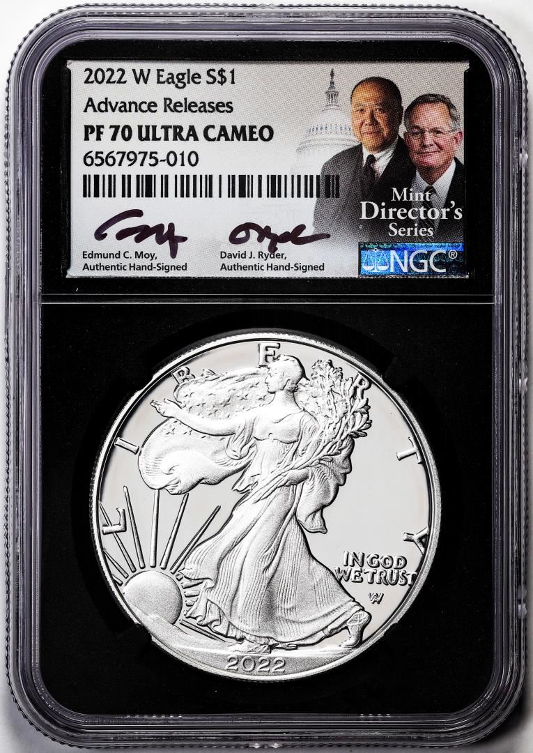 2022-W $1 Proof American Silver Eagle Coin NGC PF70 Ultra Cameo Moy & Ryder Signed