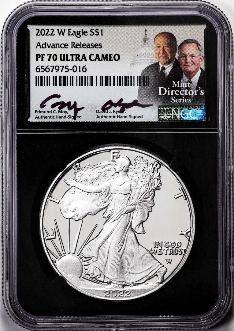 2022-W $1 Proof American Silver Eagle Coin NGC PF70 Ultra Cameo Moy & Ryder Signed