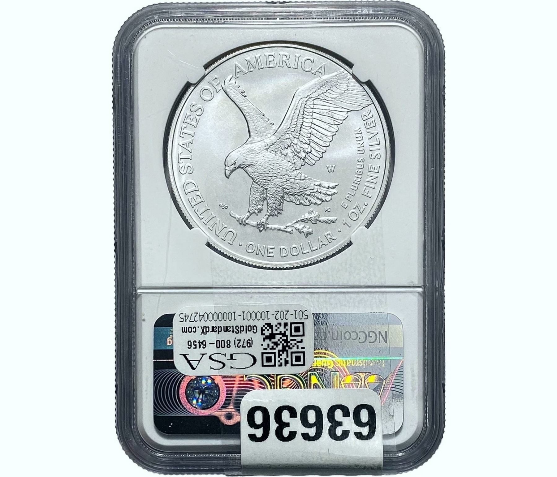 e. Coins sold referencing a third-party grading service are sold “AS IS” without any express or implied warranty, except for a guarantee by GSA that they are genuine. Removal or alteration of the holder, voids all of Bidder’s claims concerning that Product. Certain warranties may be available from the grading services and Bidders are referred to them for further details: Numismatic Guaranty Corporation (NGC), PO Box 4776, Sarasota, FL 34230, www.ngccoin.com/services/writtenguarantee.asp; Professional Coin Grading Services (PCGS), PO Box 9458, Newport Beach, CA 92658, www.pcgs.com/guarantee.html; ANACS, 6555 S. Kenton St., Ste. 303, Englewood, CO 80111; and Independent Coin Grading Co. (ICG), 7901 East Bellview, Ave., Suite 50, Englewood, CO 80111.