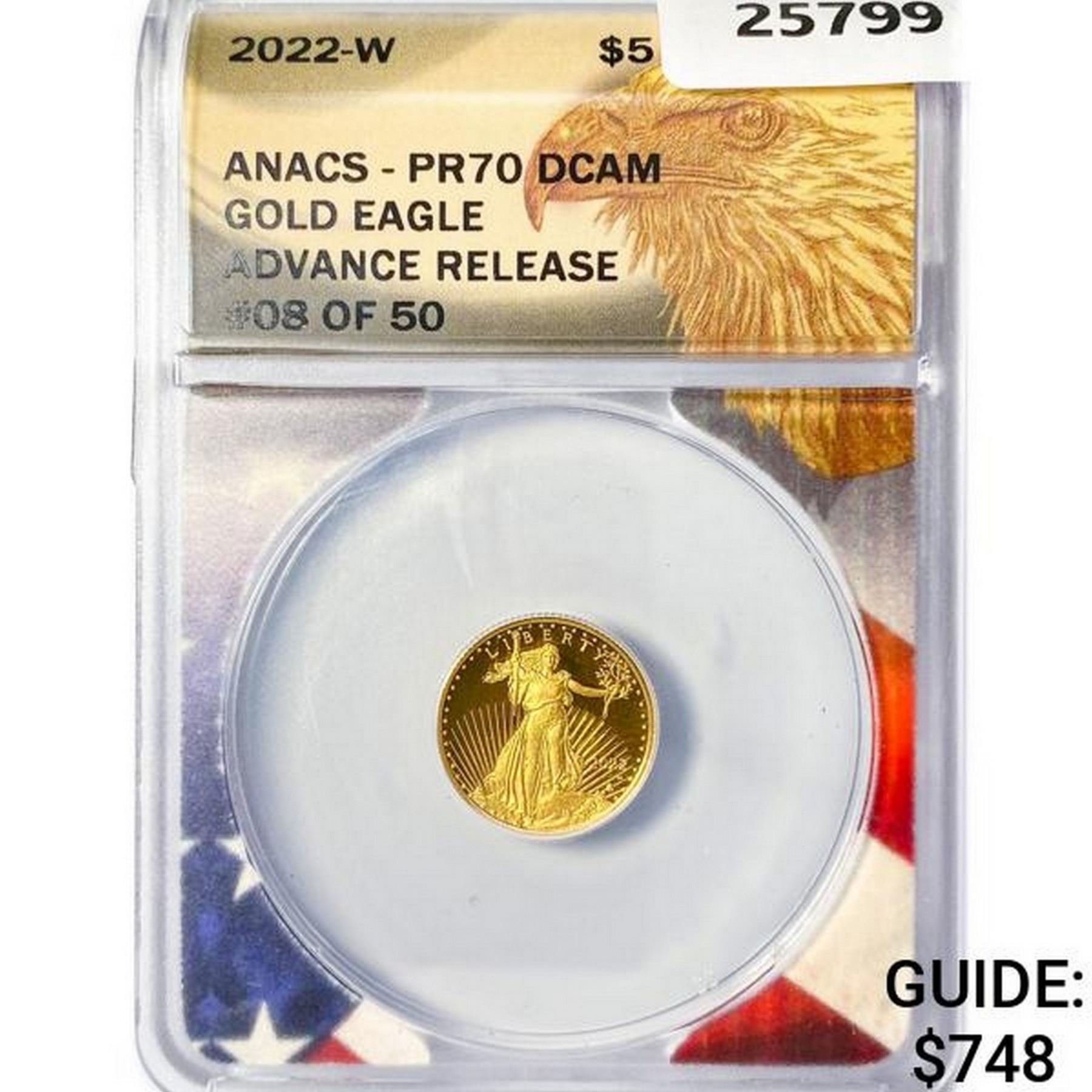 2022-W $5 1/10oz American Gold Eagle ANACS PR70 DC