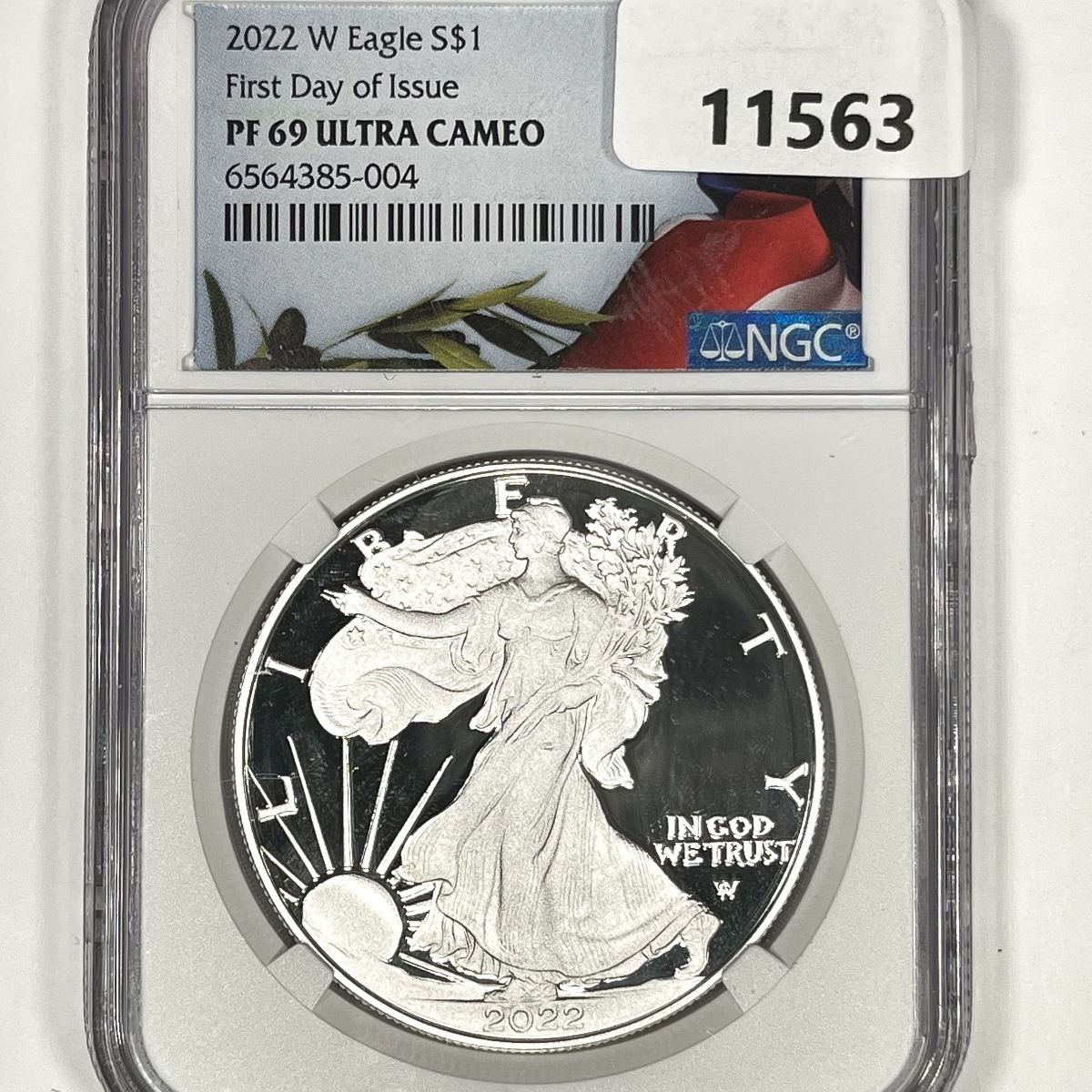 2022-W Silver Eagle PCGS-PF69 DCAM, 1st Day of