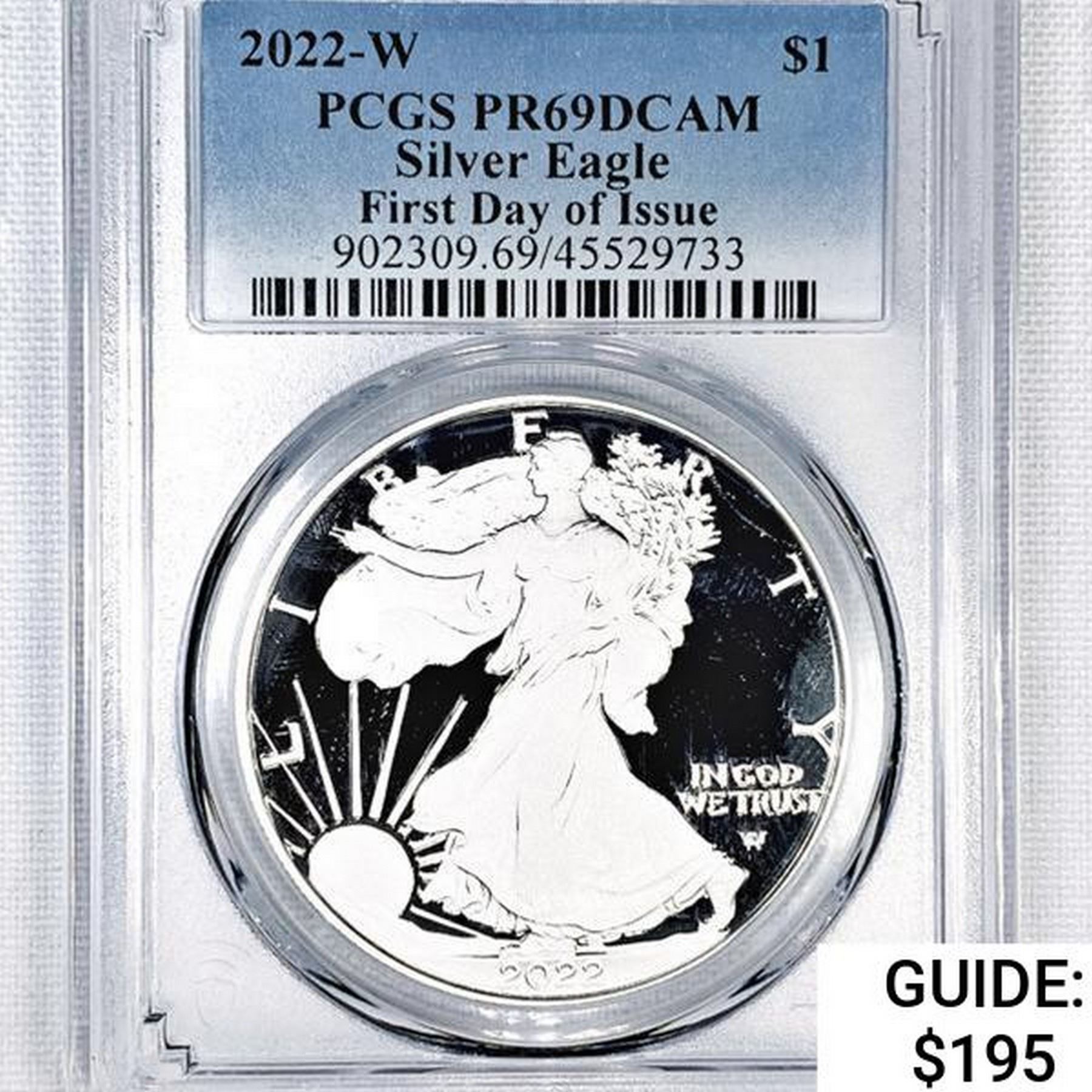 2022-W Silver Eagle PCGS PR69 DCAM, 1st Day of Iss