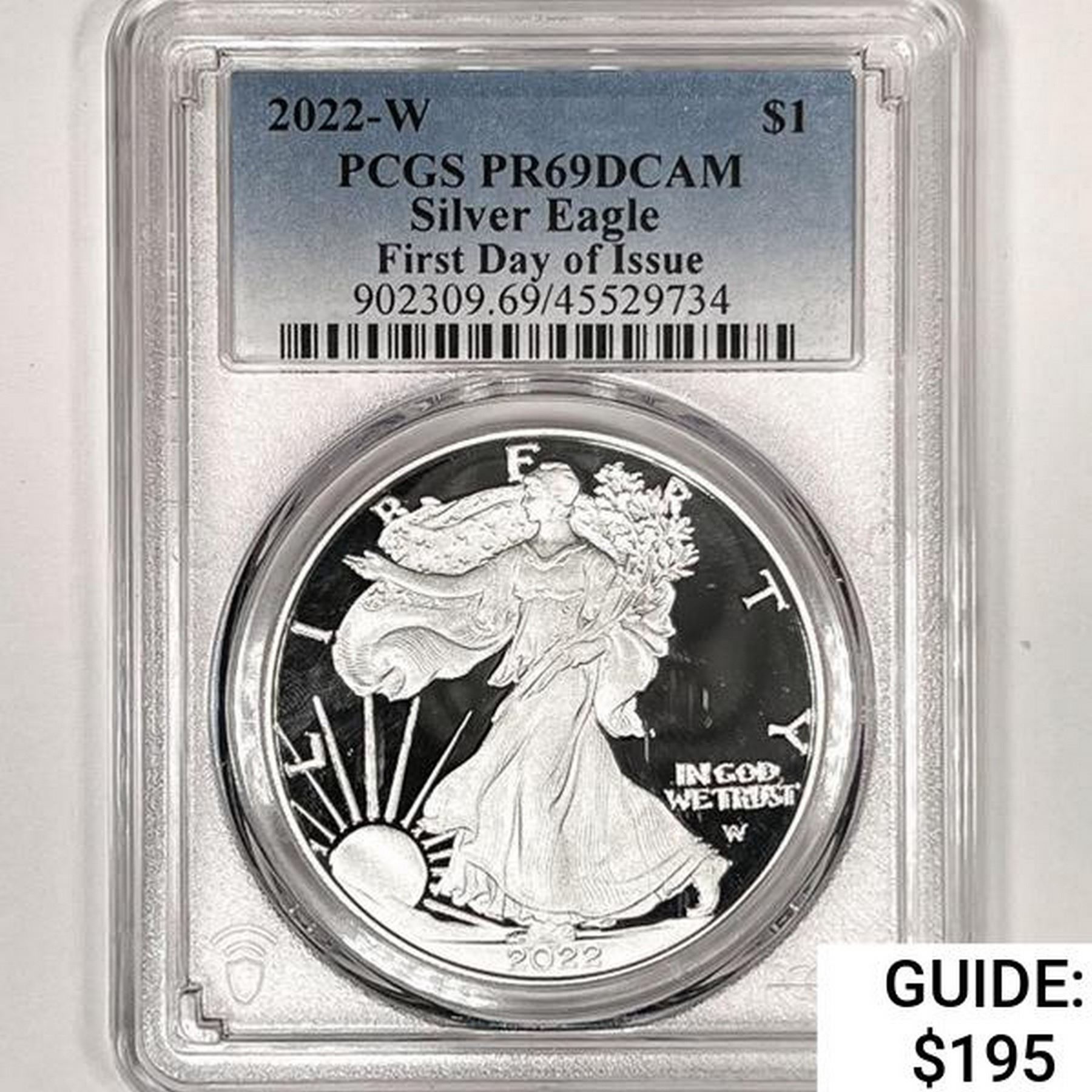 2022-W Silver Eagle PCGS PR69 DCAM, 1st Day of Iss