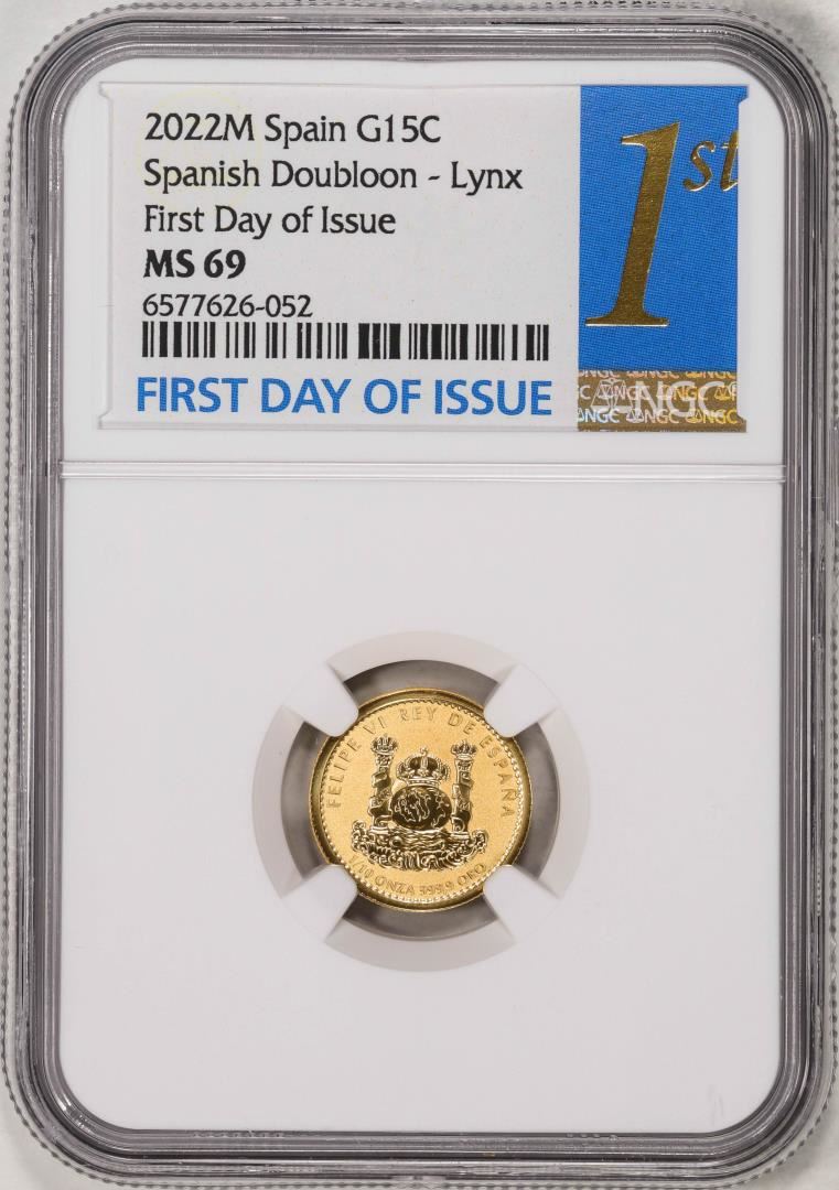 2022M Spain 15 Euro Cent Lynx Gold Doubloon Coin NGC MS69 FDOI