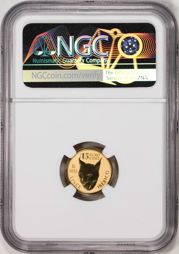 2022M Spain 15 Euro Cent Lynx Gold Doubloon Coin NGC MS69 FDOI