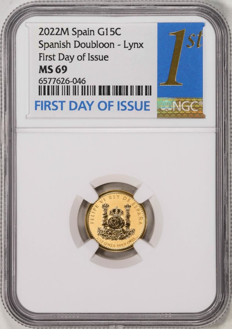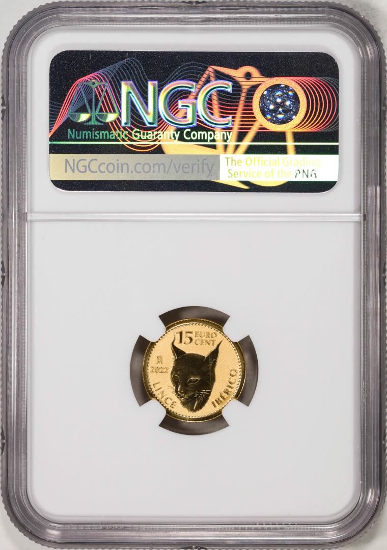 2022M Spain 15 Euro Cent Lynx Gold Doubloon Coin NGC MS69 FDOI