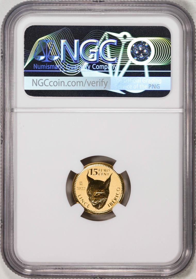 2022M Spain 15 Euro Cent Lynx Gold Doubloon Coin NGC MS69 FDOI