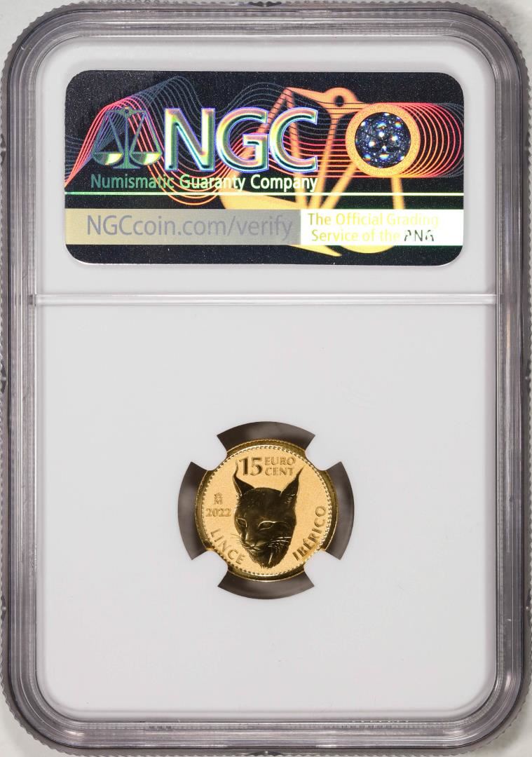 2022M Spain 15 Euro Cent Lynx Gold Doubloon Coin NGC MS69 FDOI