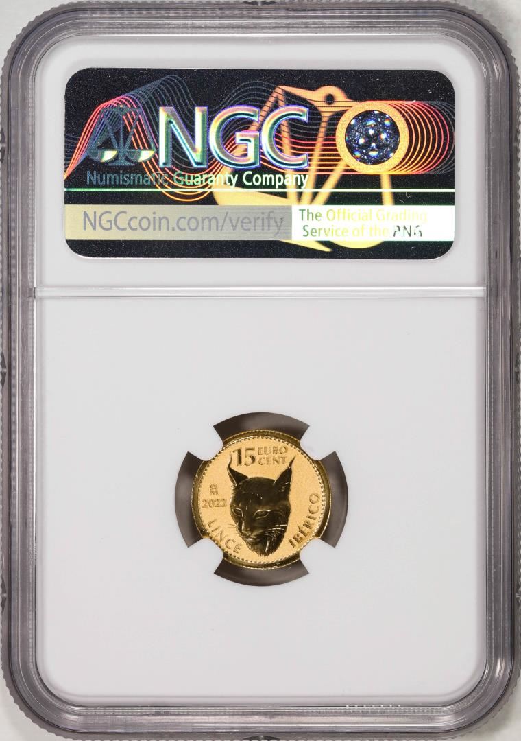 2022M Spain 15 Euro Cent Lynx Gold Doubloon Coin NGC MS69 FDOI