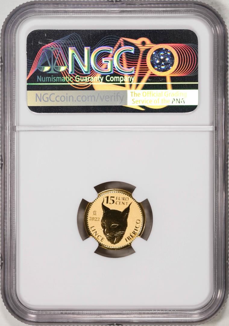 2022M Spain 15 Euro Cent Lynx Gold Doubloon Coin NGC MS69 FDOI