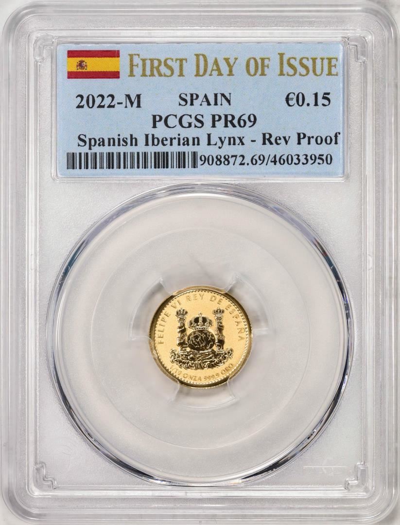2022M Spain 15 Euro Cent Reverse Proof Lynx Gold Doubloon Coins PCGS PR69 FDOI