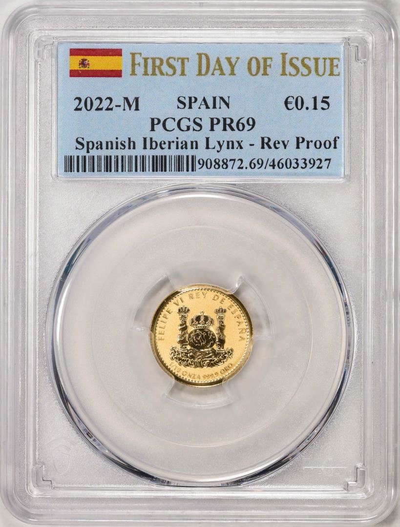 2022M Spain 15 Euro Cent Reverse Proof Lynx Gold Doubloon Coins PCGS PR69 FDOI
