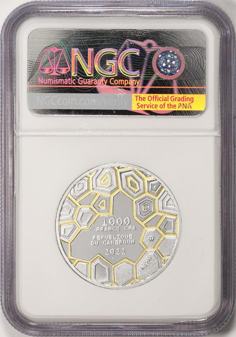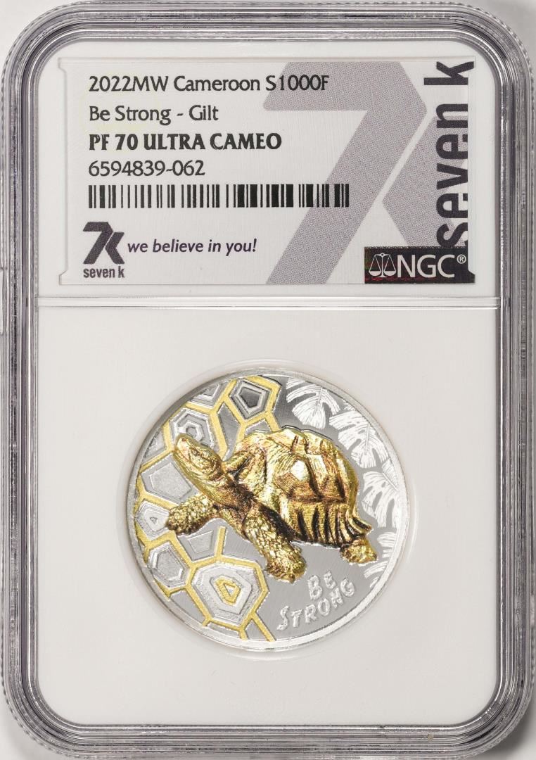 One 2022MW Cameroon 1000 Francs Proof Be Strong-Gilt Silver Coin NGC PF70 Ultra Cameo. NGC Certified.