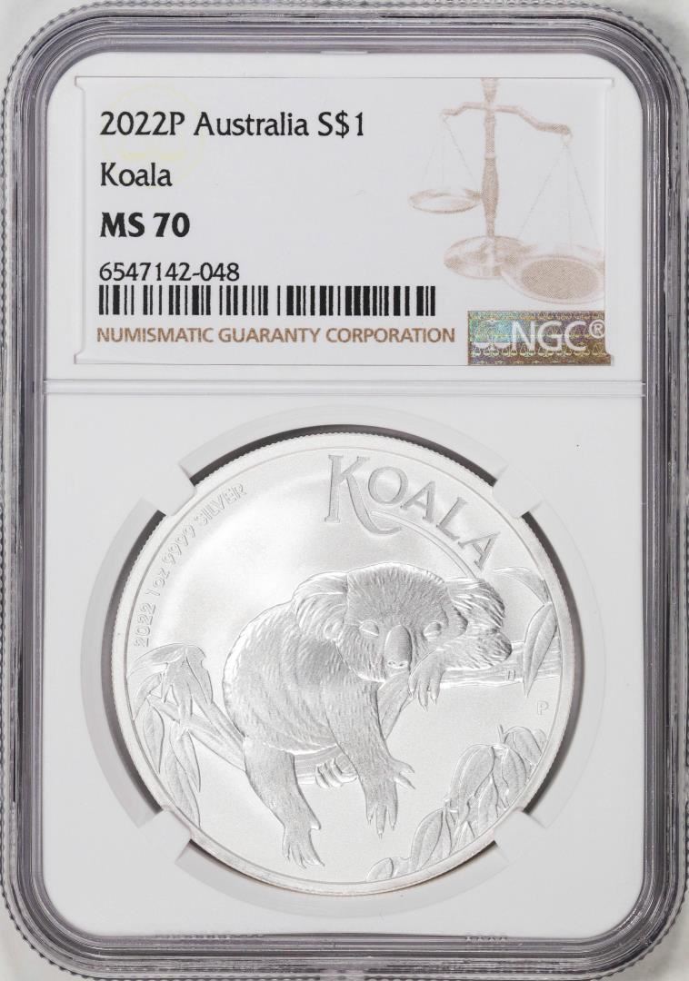 One 2022P Australia $1 Koala Silver Coin NGC MS70. NGC Certified.