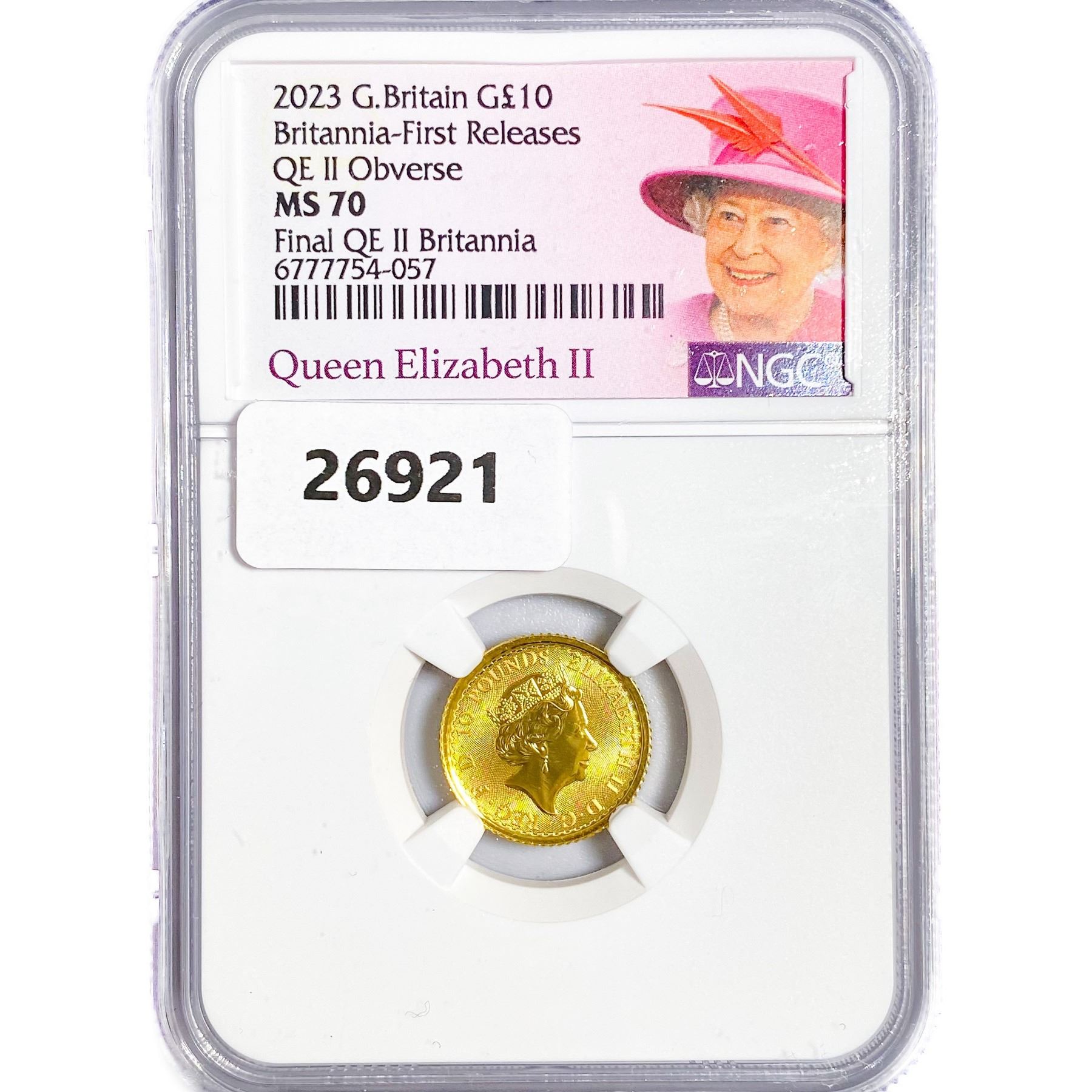 2023 1/10oz G.B. Gold £10 NGC MS70 Q. Elizabeth I