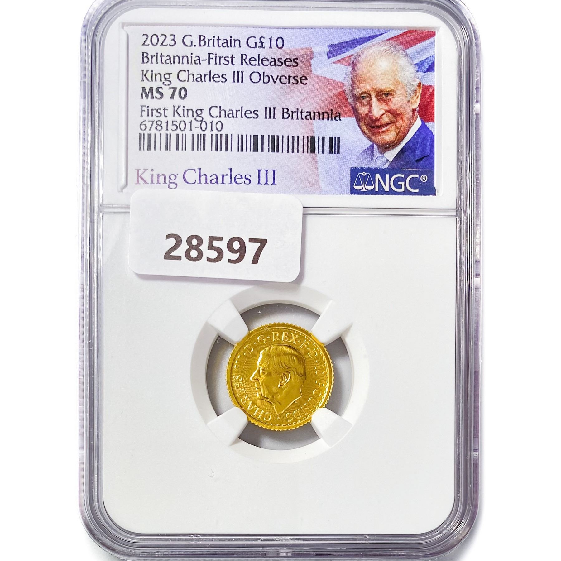 2023 1/10oz GB Gold £10 NGC MS70 King Charles III