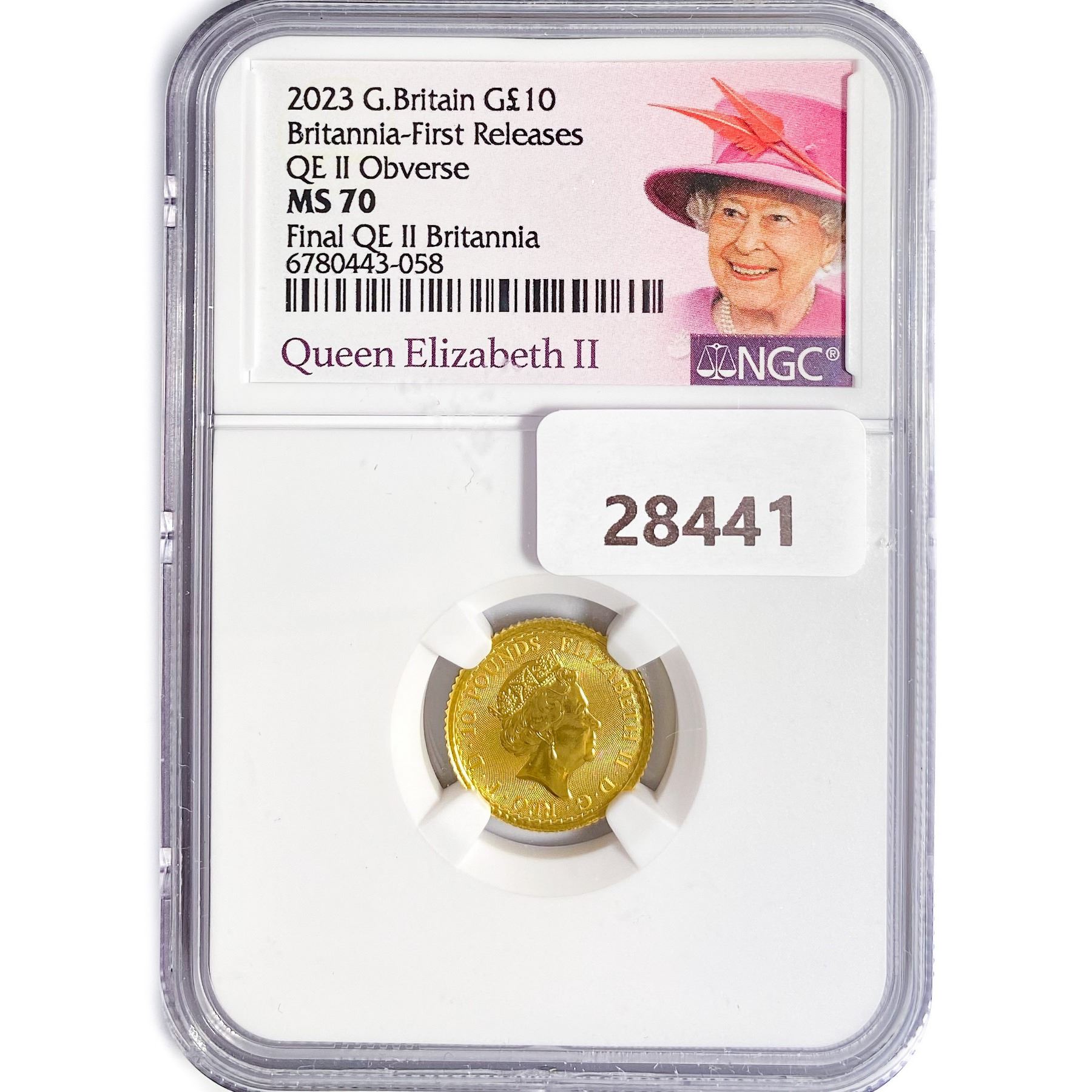2023 1/10oz GB Gold £10 NGC MS70 Q. Elizabeth II