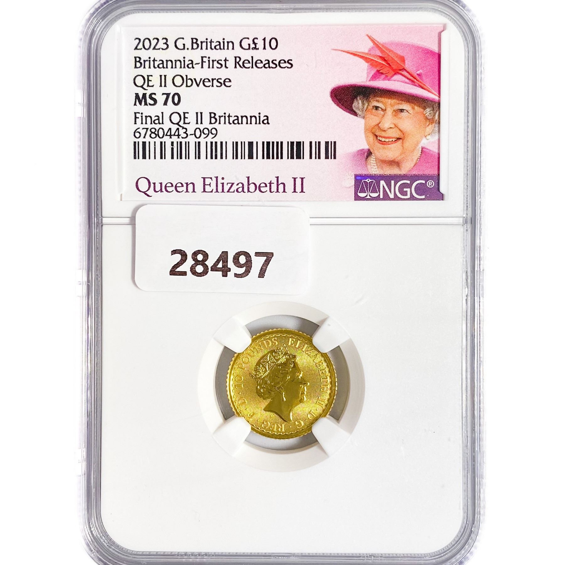 2023 1/10oz GB Gold £10 NGC MS70 Q. Elizabeth II