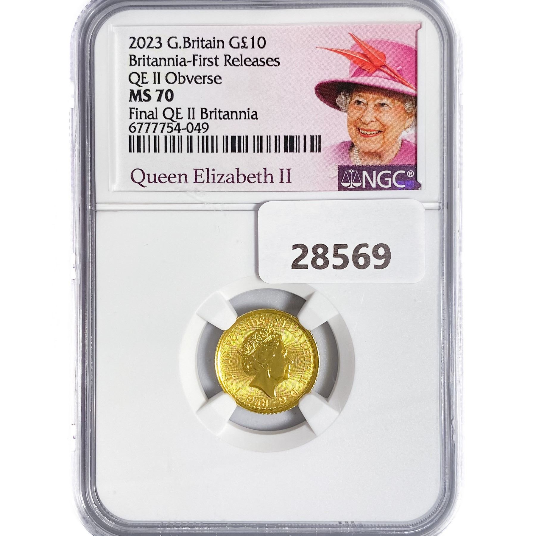 2023 1/10oz GB Gold £10 NGC MS70 Q. Elizabeth II
