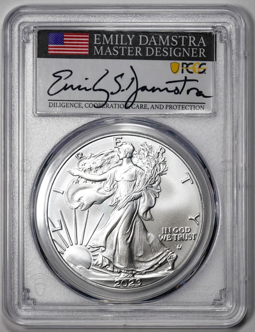 2023 $1 American Silver Eagle Coin PCGS MS70 First Day of Issue Damstra Signature