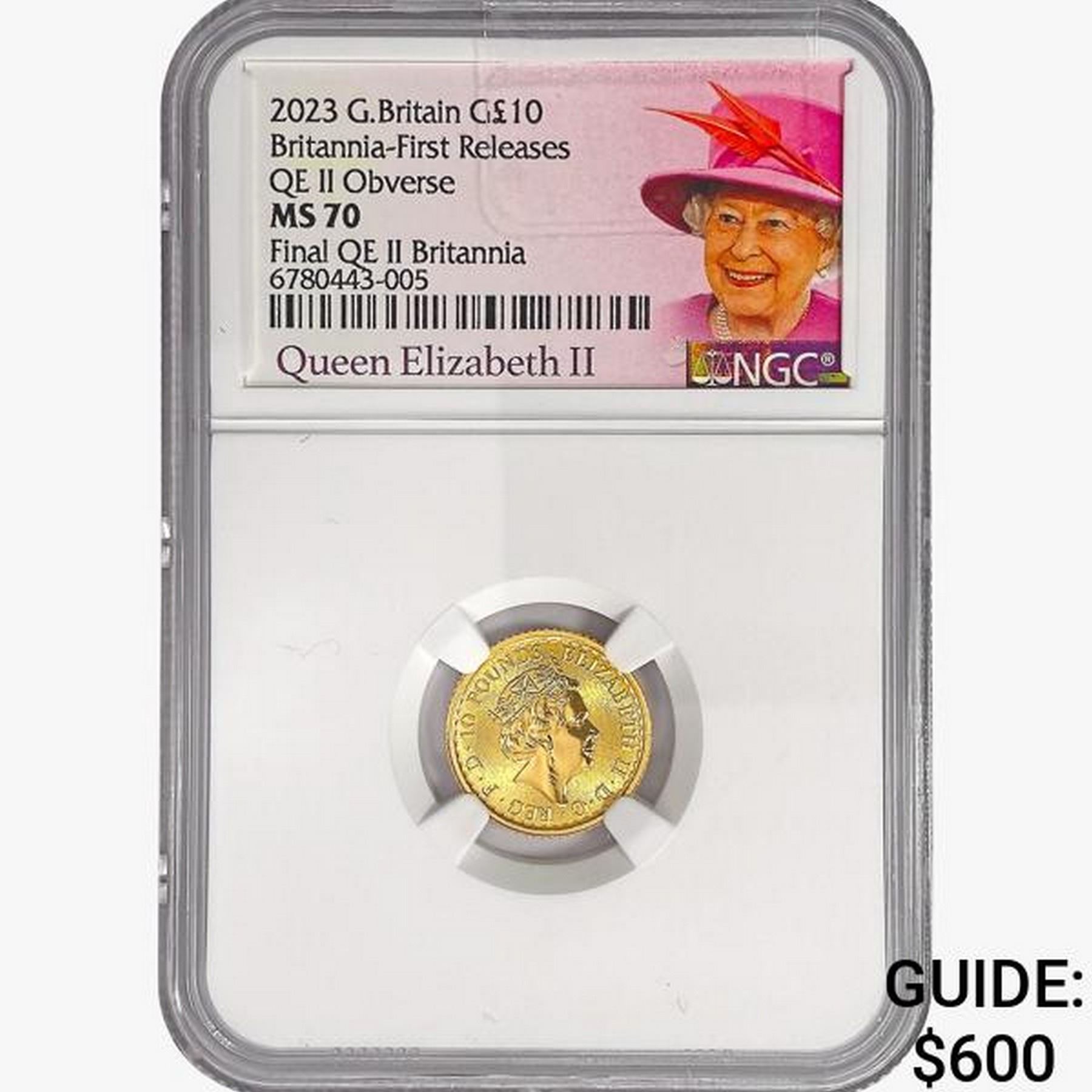 2023 10Pound G. Britain 1/10oz. Gold NGC MS70 QEII