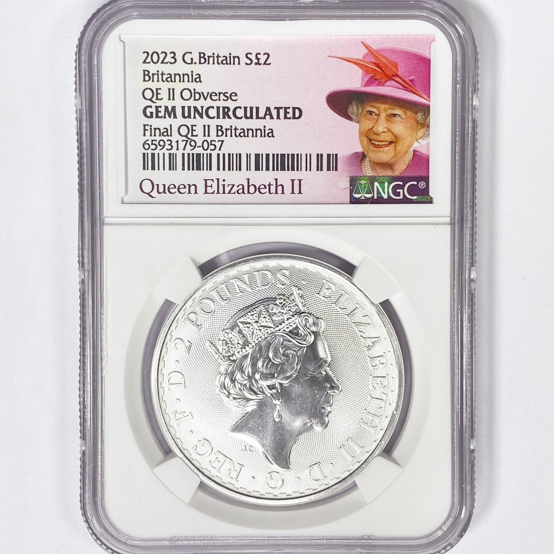 2023 1oz G.B. S2£ NGC GEM UNC Q. Elizabeth II